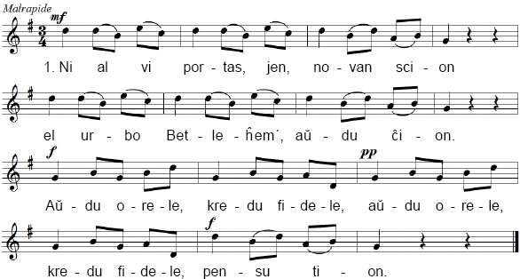 2. Plej ĉasta Virgulin´ naskis Filon, je krip´ enigis Lin en vindilon. [:Lin karesetis, je l´ kapet´ metis:] da kis´ milon. 3. El ĉiel´ anĝelar´ venis are, pridonis paŝtistar´ Lin malŝpare. [:Lin bonvenigis, Lin honorigis:] malavare. 4. Paŝtistojn anĝelo mem admonis, lia voĉ´ super la herbej´ sonis. [:Ĝoje rapidi, Jesuon vidi:] li ordonis. 5. Dum naskiĝ´ de Jesu´ en momento mirindaĵ´ vidigis sin al gento: [:Meznokto iris, sed tage brilis:] firmamento. 6. Sonas kant´ belĉarma inter nuboj, kantas pri Mesio la keruboj, [:ke Li surtere, aperis vere:] sen la duboj. 7. Ankaŭ ni, kristanoj, tuje iru, en sankta la kripet´ ni admiru [:Jesuon nian, Sinjoron pian:] al ni tiru. GRACOPLENAN KRISTNASKON KAJ DI-BENITAN NOVJARON 2024 AL LA LEGANTOJ DE DIO BENU ELKORE DEZIRAS LA REDAKCIO SINKONSEKRO AL LA SENMAKULA KORO DE MARIA Nia Sinjorino de la Espero, ĉiela Reĝino de la Popoloj, ni volas resti kun Vi, kiel la Apostoloj en la Vespermanĝejo, atendante la Sanktan Spiriton por „nova“ Pentekosto. Ni volas resti kun Vi, kiel infanoj de la ĉiela Patro, temploj de lia Sankta Triunuo, por esti plenigitaj je la Dia Amo. Ni ĝoje renovigas nian konsekron al Via Senmakula Koro, daŭre konfidante al Vi la tutan Esperanto-popolon, ĉar Vi estas Ekzemplo kaj Modelo por la unuopaj kristanoj kaj la tuta Eklezio. Laŭ la Volo de Dio ni sopiras marŝi kun Vi, nia Sinjorino de la Venko, por ke estiĝu en ni kaj en la tuta homaro la Regno de Jesuo. Solene kaj tutkore ni renovigas la promeson travivi ĉiutage, per pensoj,deziroj, agoj kaj posedaĵoj, niajn baptajn, konfirmaciajn kaj eventuale pastrajn aŭ geedzajn sindevigojn, helpe de la Dia Graco, de kiu Vi estas elektita Tabernaklo kaj Perantino por la tuta Eklezio. Al Vi ni volas aparteni korpe kaj anime, por esti konsekritaj al Jesuo, viktimoj kun Li por la gloro de la Patro kaj la savo de la pekuloj. Tial ni arde ripetas, nun kaj ĉiutage: „Tute Viaj ni estas, kaj ĉio nia estas Via“. Amen!