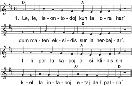 kampanuloj, bluaj en konkord´ / kun la konvaletoj kantas en akord´. / Ni kun