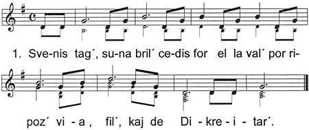 Tradukis Josef Cink 1. Dia ama rozbuked´ / floras al ni en la KET. 2. Vivu, vivu, Esperant´, / lingvo bela kiel kant´. 3. Vivas ni en KET-tendar´, / en ĝi nia amikar´.